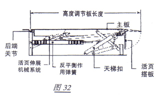 液壓式調節板(圖31)由液壓系統産生動力,提升起主板。液壓式調節板使用可靠,但價格較高,而所需保養和調校較空氣動力系統多,因為它結構復雜,零部件多,油路和電路并存。
