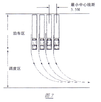 有坡度的泊車區應設計完善的排水設施。排水區位於平台前,從平台墻壁向外應有少許坡度(1—3CM),距離排水道應有 0.5至1米(圖9)。排水區不能太寬,以减少貨車後軸位置影響貨車車廂與平台之間的高度差。